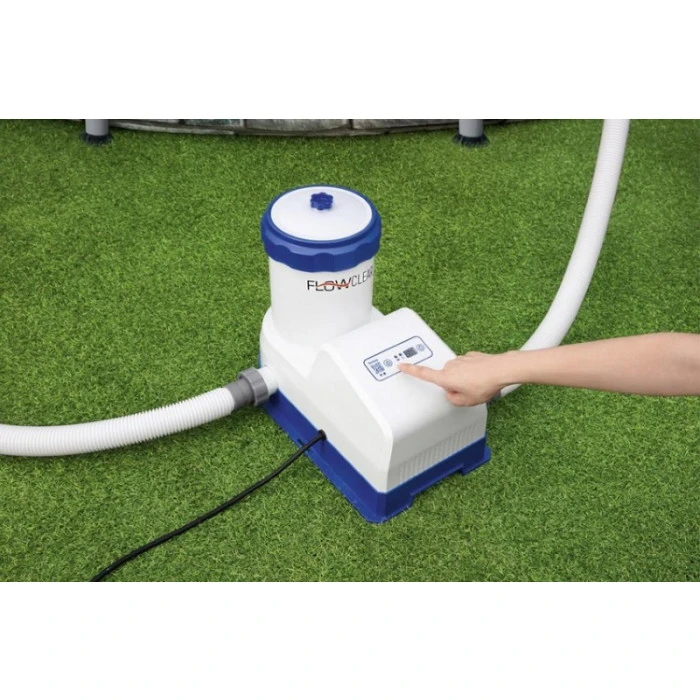 La version tactile et intelligente de l’épurateur Bestway a un débit de filtration de 7,57 m3/h. Elle fonctionne avec des cartouches de type IV ou B. Une cartouche est d’ailleurs incluse avec votre épurateur.