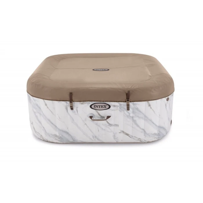Le Pure Spa Calacatta (ref 28464EX) est un modèle 2023 de la marque Intex. Les spas carrés d’Intex sont des valeurs sûres, avec Calacatta la marque dévoile un design luxueux rappelant le marbre blanc de type Calacatta extrait de Carrare en Italie.